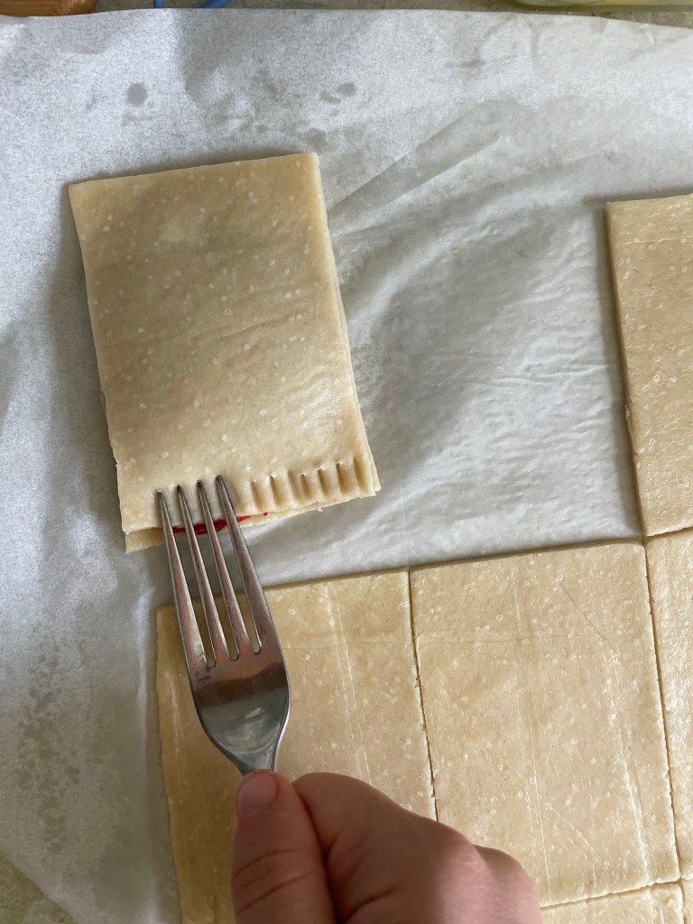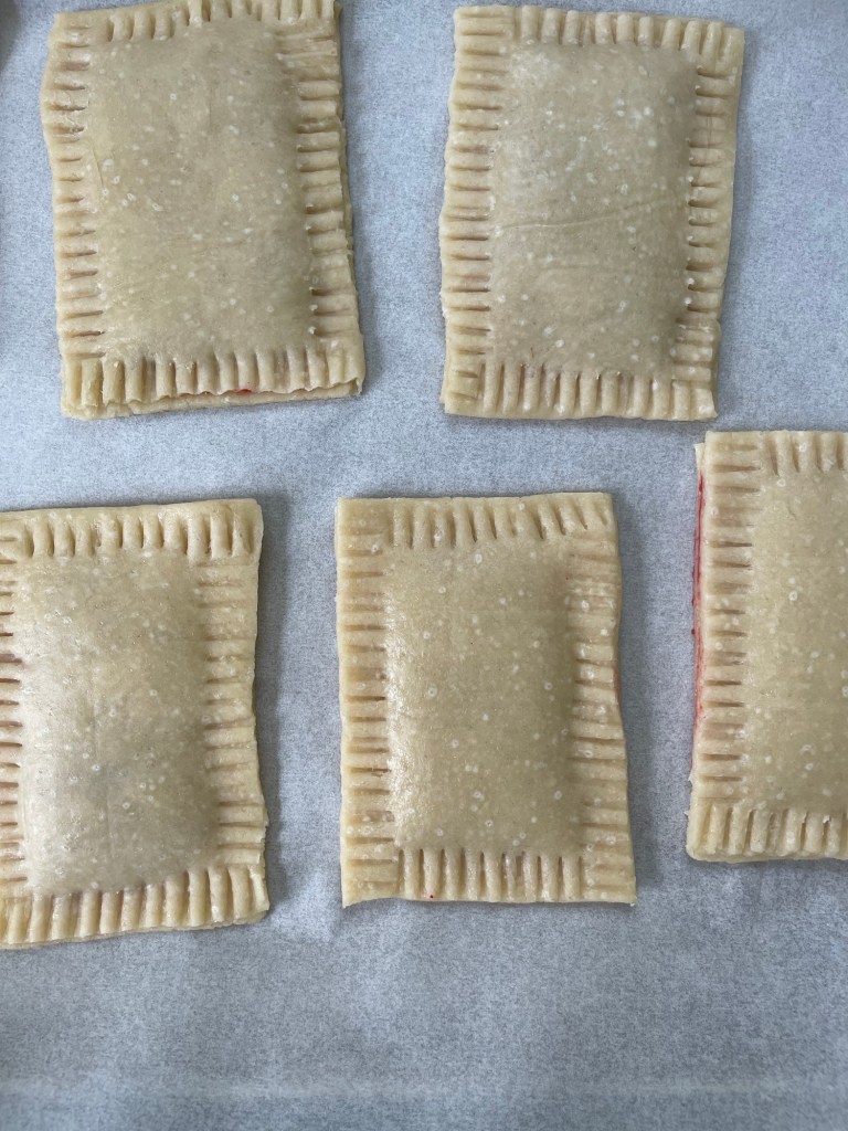 Once all poptarts are sealed, place them on a baking sheet and bake for 18-22 minutes.