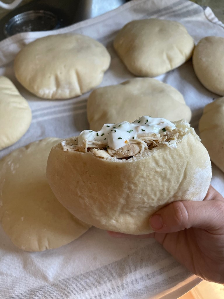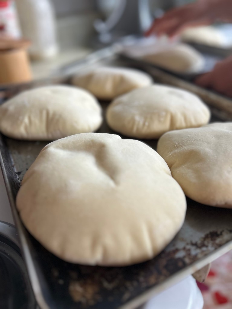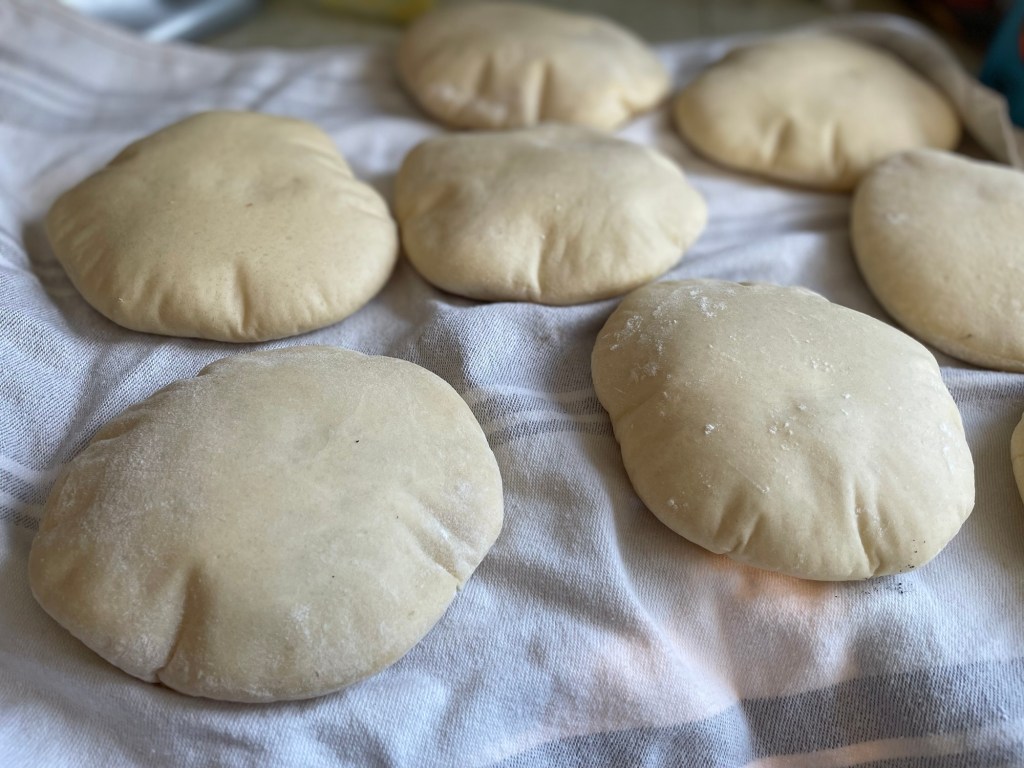 Cover all pita circles with a towel and allow to get puffy and rise for about an hour.