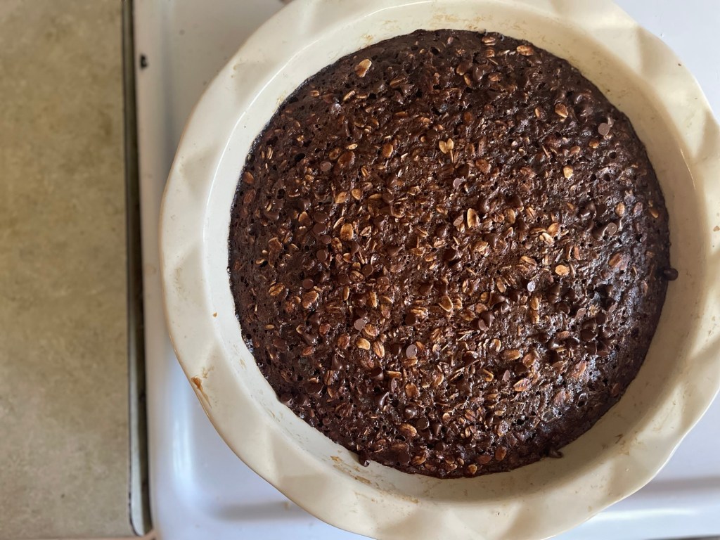 Grease 9×9 or pie pan. Pour mixture in and bake for 35-40 minutes.